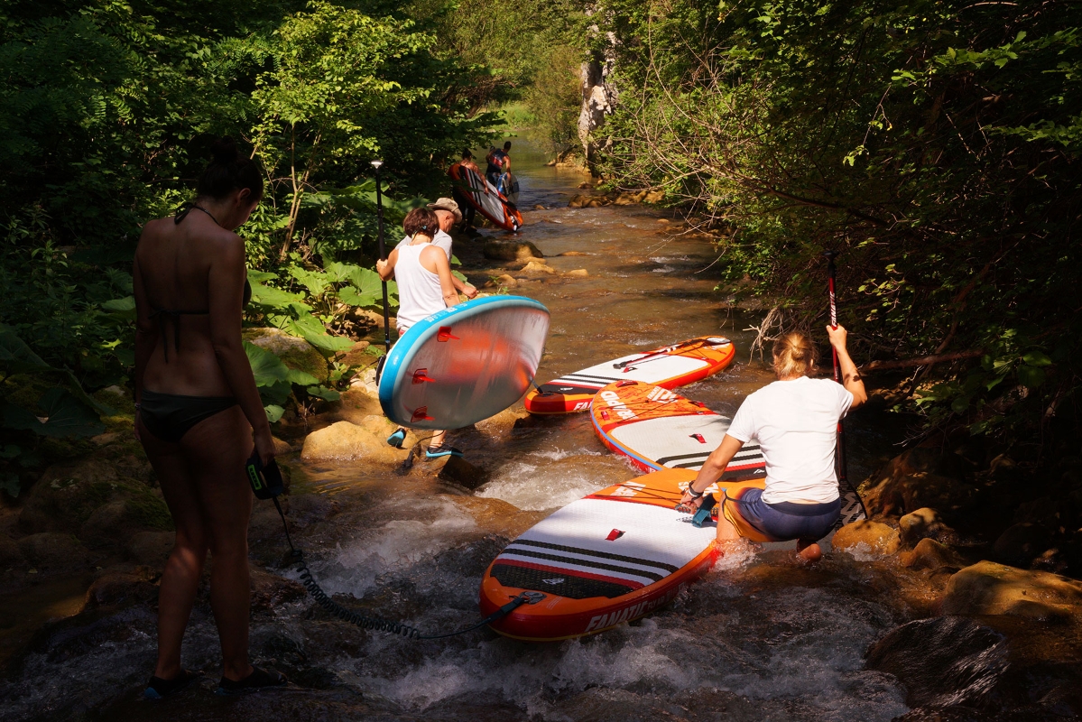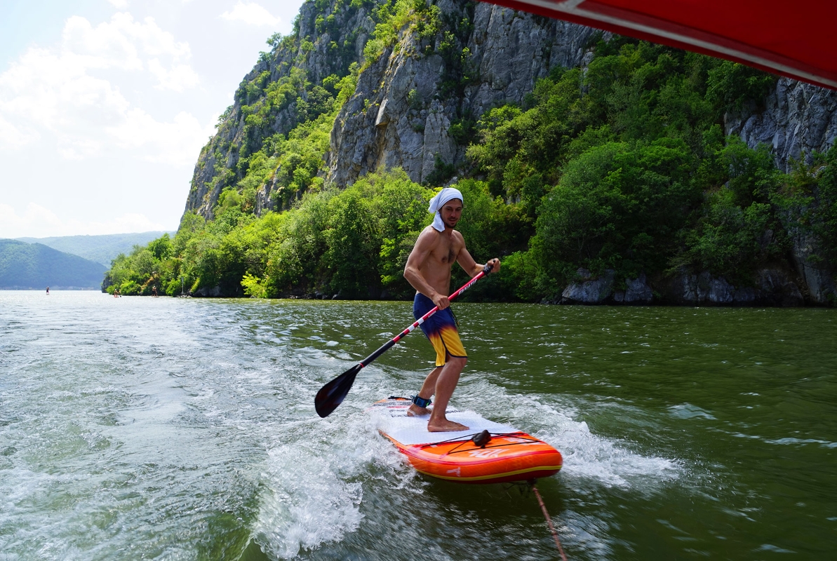 This trip is for the beginners who have already practiced Stand Up Paddle and know how to keep their balance, swing and return the plate. Although we will be accompanied on the Danube by a boat, we will take a SUP and River SUP course in the first evening, in order to increase the safety and ease our communication in expeditions. The form in which we practice SUP on the Danube is exploratory in speed, and because of the high river flow we will be permanently moving. In the Nera Gorges, the SUP form is relaxing, with portions of the River SUP and, depending on the flow, on some short portions we get off the plate to pass the small water.