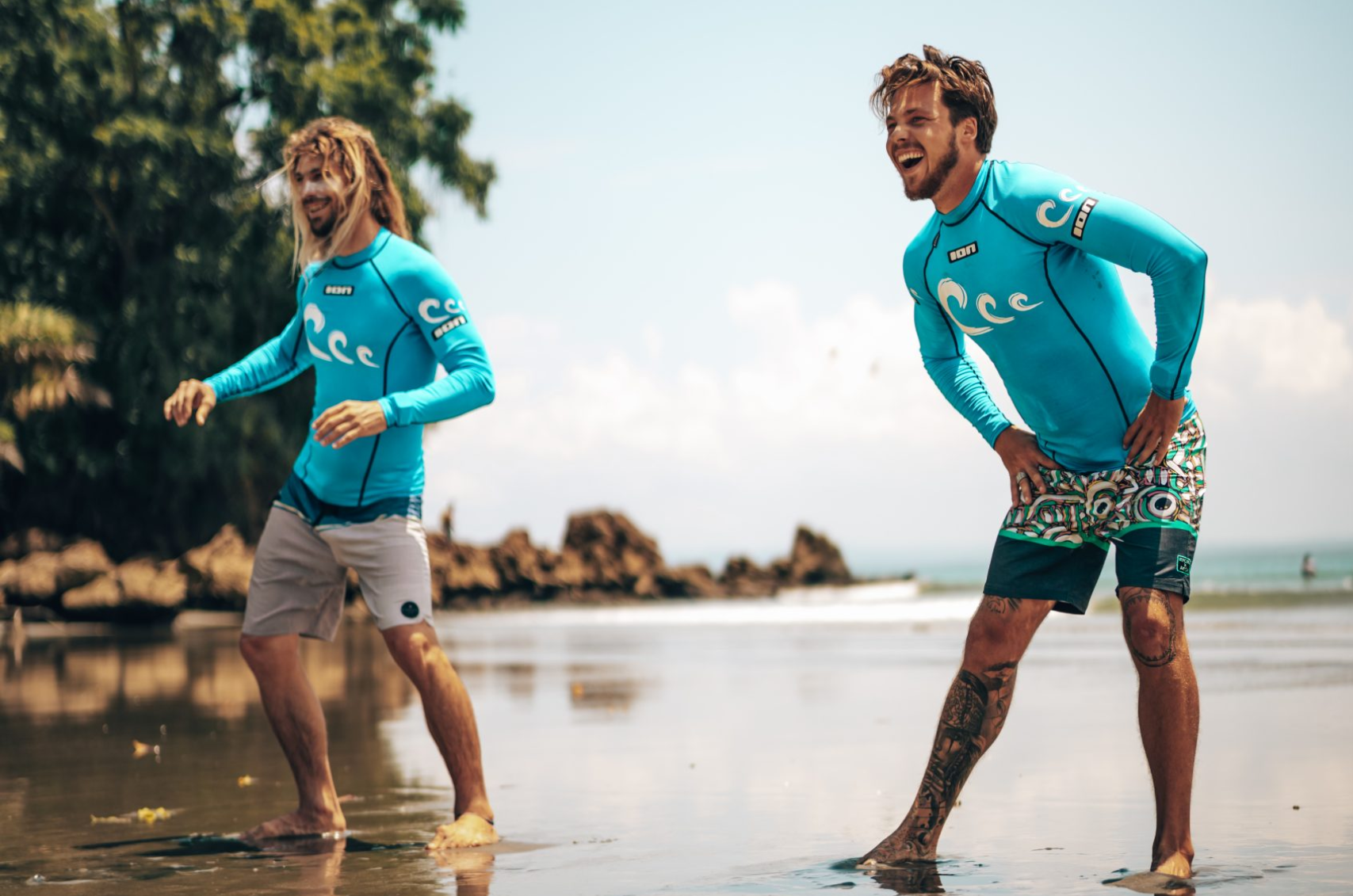 The water is warm so we will only need during surf session and classes UV protection blouse and a surf board that will be hard-top longboards for more experienced ones or soft boards for beginners.